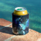Fabuleux, brillant, bleu et jaune, papillon de nuit sur arrière - plan foncé.