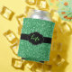Elégante texture de parties scintillant verte moderne avec accents noirs et monogramme personnalisable.