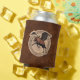 Un timbre en cuir portant le logo du mythique Flying Moose Aviation à Talkeetna, en Alaska, porté par les pilotes de brousse de la compagnie. Comprend un orignal ailé superposé sur un cercle avec le texte "AVIATION DE MOOSE VOLANT", "TALKEETNA, AK" et "ESTD 1957". Ajoutez votre propre texte supplémentaire à l'envers. Tout est superposé sur une image arrière - plan en cuir marron. Vols, débarquements de glacier, cargaison, charters de chasse et de pêche. Nous volons, dites-nous où vous voulez aller.