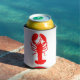 Peut refroidir avec l'image d'un homard rouge contre un arrière - plan blanc avec un dispositif de flottaison rouge sur le fond.