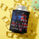 Une explosion rouge, blanche et bleue en forme de drapeau américain, avec étoiles et bars, éclaire contre un arrière - plan noir pour une étonnante démonstration de beauté patriotique. Ajoutez le nom de votre héros personnel dans une police blanche casquette simple pour personnaliser.