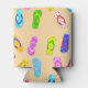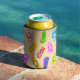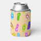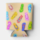 Gardez vos boissons cool avec cette canette plus fraîche avec un motif mignon et branché de tongs colorés sandales sur un arrière - plan couleur sable. Parfait pour les amateurs de plage et de sandales.