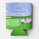 Gardez la célébration amusante et festive avec ce refroidisseur de canette pour enterrement de vie de jeune fille sur le thème du golf ! Au centre se trouve un green de putting en forme de cœur avec un drapeau qui indique « Future mariée ». Un chariot de golf décoré ajoute au charme, avec du champagne, des cadeaux, un diadème et une illustration de gâteau d'enterrement de vie de jeune fille. Un voile de mariée drapé sur le sac de golf rassemble tout le thème, ce qui en fait un souvenir ludique pour les invités. Conçu par Daphsam, ce refroidisseur de canette unique est parfait pour trinquer à la future mariée dans le style.