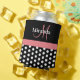 Chic et tendance avec noir, rose et blanc. Toujours dans le style des pois. Un cadeau parfait ou faites-le pour vous-même. Customisez de vous donner suite. Utilisez votre nom de famille ou votre prénom ou utilisez votre propre texte. Si vous avez besoin d'aide pour en faire plus votre propre, envoyez-moi un courriel à l'adresse suivante : designsbykatz@gmail.com