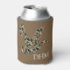 This monogrammed can cooler features a flying mallard duck in camouflage print of brown and dark green on each side. Personalize the monogram with your choice of initials. Great for monogrammed gift bags and party favors.