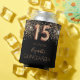 Un glacière pour une Quinceañera girly et glamour, 15ème anniversaire fête avec les filles. Un arrière - plan noir chic avec une parties scintillant d'or foncé faux tombe. Le nom est écrit dans une couleur dorée avec un script de style moderne écrit à la main. Personnalisez et ajoutez un nom et une date.
