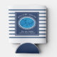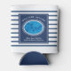 Accueillez famille et amis à un événement sur le thème maritime ou côtier avec une boisson rafraîchissante enveloppée dans un refroidisseur de canette personnalisé qui présente une illustration de tortues marines, des rayures marines de la marine, un accueil chaleureux « Bienvenue à bord », ainsi qu'un espace pour ajouter le nom de votre bateau, l'emplacement du quai, la date d'achat ou autre texte pour créer un cadeau unique pour les propriétaires côtiers ou les amateurs de bateaux.