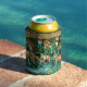 Can Cooler avec la tapisserie de William Morris Verdure avec cerf et boucliers (1891-1894). Une scène verdoyante de cerfs buvant dans un bassin d'eau et mangeant des feuilles d'arbres dans une forêt verte. Au-dessus de eux sont accrochés les boucliers des Chevaliers de la Table Ronde. Un cadeau magnifique pour les amateurs d'Arthuriana et les collectionneurs d'art victorien.