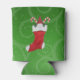Cette boîte de refroidissement est verte avec un motif tourbillonné et un bas de Noël rouge et blanc qui a un joli gnome en haut avec des feuilles et des sucres de canne saints à l'avant et à l'arrière.