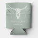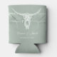 Rustique pastel sauge vert blanc rustique bull crâne de vache pays western rodeo cowboy mariage réception bière peut refroidir. Vintage ferme inspirée imprimé de la texture en détresse favorise les cadeaux. Ancien style sauvage ouest antique. Cool, tendance, design animal de ferme moderne. Personnalisez votre script. Copyright de l'image Marg Seregelyi Photography.