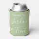Ces refroidisseurs/coozies à la sauge personnalisée sont parfaits pour un mariage, une fête de fiançailles, une douche nuptiale ou un dîner de répétition. Le design présente la couleur verte sage tendance avec des polices simples et modernes. Customisez-les avec votre nom et votre date d'événement pour en faire un des meilleurs !