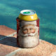 Can cooler with a cute retro style illustration. Santa Claus with a bushy white beard wearing his traditional red suit.