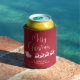 Fun saisonnier rouge et blanc peut refroidir pour vos fêtes de Noël et décor de table qui comprend rennes volant Père Noël traîneau à travers l'air, "Joyeux Noël" dans un script blanc moderne et votre nom ou événement en simple typographie.