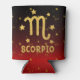 Coozie personnalisée / peut refroidir pour "Scorpio" avec symbole zodiaque doré, étoiles dorées, et arrière - plan dégradé rouge et noir.