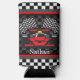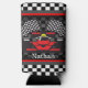 Auto Racing Race Car Design Seltzer Can Cooler avec du texte personnalisable sur deux côtés.