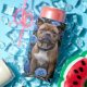 Dans Un Jardin Rose Bleu, Vous Trouverez Un Staffy Brown Et Blanc.