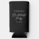 This elegant black bachelorette party seltzer can cooler features chic white typography for a modern bride who is going to have an upscale event with her bridesmaids. Trendy personalized minimalist bridesmaid favors.