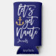 Équipières, gardez vos boissons en conserve au frais avec ce refroidisseur de canette de seltzer humoristique "Let’s Get Nauti" avec une typographie moderne ornée d'une ancre à effet doré, sur fond bleu, qui peut être personnalisé avec le nom de la mariée, la date du mariage ainsi que le nom du destinataire. Fait un excellent souvenir de l'enterrement de vie de jeune fille ! Pour toute question ou demande concernant ce design, veuillez nous contacter via le chat ; nous serons ravis de vous aider !