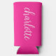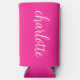 Un nom de calligraphie girly moderne rose et blanc sur un refroidisseur de canette de seltzer mince.