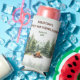 Seltzer Can Cooler avec pinède et feu de camp. Tout est placé sur un arrière - plan blanc et vert clair. Idéal pour votre prochaine réunion de famille, anniversaire ou tout événement sur le thème de la nature. Personnalisez facilement tout le texte ou laissez un peu de blanc - Kate Eden Art.