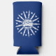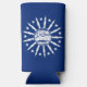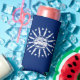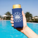 Can Cooler with flag of city of Buffalo, New York; blue flag with white seal of the city and 13 lightning bolts