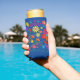Fleurs vives et festives Seltzer Can Cooler Nice arrière - plan bleu avec quelques-unes des Fleurs les plus brillantes et les plus belles faites à l'avant et au dos. Très festif. Vous saurez quelle boisson est à vous