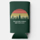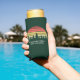 Le seltzer de réunion familiale jumelé cool peut refroidir en vert pour tout le groupe lors d'une sortie nature ou d'un voyage de camping. Ces cadeaux de conservation personnalisés présentent un magnifique coucher de soleil vintage sur une forêt de jolis arbres sous votre texte personnalisé.