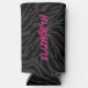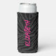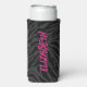 Un imprimé léopard noir sur charbon amusant recouvre ce refroidisseur de canette de seltzer personnalisé avec votre nom imprimé verticalement en lettrage rose chaud chic sur l'avant et l'arrière. PLUS de conceptions dans notre collection.