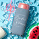 Un chic refroidisseur de canette de seltzer pour lancement de mariage bleu poussiéreux pour un événement estival côtier au bord de la mer. Personnalisez ces faveurs bleu gris clair avec une typographie minimaliste élégante pour correspondre à votre palette de couleurs de mariage tranquille.