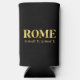 Lux look can cooler features Rome, Italy latitude and longitude map coordinates in gold fonts on black background.