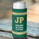 Can coolers are great to have, whether you’re relaxing at home, spending time outdoors, or hosting a party! This sport jersey style design features retro block lettering and matching stripes. Personalize the template with the recipient's monogram initials, and your own custom text. Ideal for motivational phrases, cool sayings, funny quotes, sports team titles, party celebrations or simply a person's name. The design is repeated on both sides, with further customization at the base. You can also customize the background color by using the design editor tool. Perfect for all ages, from kids and teens to family and friends! Printed colors: yellow gold, green and white.