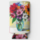 A pretty floral can cooler with an illustration of a colorful vibrant glass vase of flowers done in an ai impasto style oil painting.