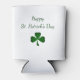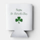 Happy St. Patrick's Day Irish can cooler, with a cute green shamrock design white background. With green script typography lettering, you can customize with your own text. Great for your St. Patrick's Day party celebration.