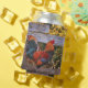 Un coq de strutting coloré cette image de pays fait un grand style de ferme peut refroidir. Poulets contre une clôture de campagne avec des feuilles de couleur automne dans l'arrière - plan c'est un glacière animal de ferme amusant et coloré!