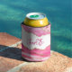 Tendance Moderne Rose Agate Or Pailleté Personnalisé Can Coolers présente de superbes agates roses sur fond blanc avec votre nom personnalisé en typographie calligraphique moderne. Parfait pour les fêtes d'anniversaire, les cadeaux et les célébrations. Conçu par ©Evco Studio www.zazzle.com/store/evcostudio