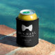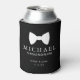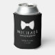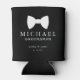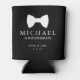 Refroidisseur de canette noir personnalisable avec illustration de noeud papillon blanc et typographie classique avec le nom des mariés et la date. Ce refroidisseur de canette sera un souvenir de mariage idéal pour votre cortège de mariage.