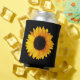Joli floral peut refroidir avec des graphiques d'une grande fleur de tournesol, contre un arrière - plan noir. Customisez d'ajouter votre propre texte.