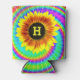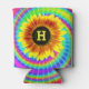 Cette mignonne mousse florale d'été rétro peut refroidir design a une floraison de tournesol audacieuse en pleine floraison sur un arrière - plan hippie des années 60 brillant, teint en cravate. La fleur peinte est faite dans les tons jaune vif et orange vif avec un centre noir et monogramme. Si vous aimez les motifs fleuris, les jardins et la puissance des fleurs des années 60, vous aimerez ce design vibrant et inspiré de l'été. Ajoutez votre monogramme en jaune pour personnaliser ce design super. La fleur apparaît sur les deux côtés Profitez de votre boisson dans le style vintage avec cette canette unique plus frais.