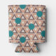 Cette boîte de refroidissement a un design géométrique de triangles brun et bronzés répétés avec des cercles turquoise sur un champ de blanc cassé. Voulez-vous le même design dans des couleurs différentes? Message-moi.