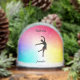 Capture the grace and beauty of a ballerina with this enchanting rainbow-themed snow globe. The silhouette of a ballerina dances against a vibrant rainbow backdrop, accented with twinkling stars, creating a magical winter wonderland scene. Personalize it with a name for a unique and memorable keepsake. This personalized snow globe makes a perfect gift for birthdays, holidays, or any special occasion for ballerinas of all ages. It's a delightful decoration to add a touch of elegance and whimsy to any room.