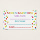 Cartes de suggestions de nom de baby shower avec motif confetti arc-en-ciel, parfait pour un bébé sprinkle.