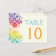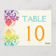 Arc-en-ciel mariage damassé carte postale numéro de table qui présente un motif damassé dans les couleurs arc-en-ciel sur arrière - plan ivoire. Ce design moderne mais classique est un modèle et fait partie d'un ensemble mariage adapté pour un printemps, été de mariage de automne avec un thème arc-en-ciel. Il est personnalisable et peut être personnalisé. Couleurs : Rouge, orange, jaune, vert, bleu, violet violet, ivoire.