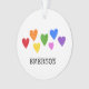 Motifs de coeur en Arc-en-ciel Couleurs de rouge orange jaune vert rose bleu violet. Nom personnalisé en noir. DATE de naissance personnalisée au verso. Facile à personnaliser le texte, la couleur du texte, la police. Idéal pour TOUT anniversaire, nouveau bébé, thème baby shower, enfants de tous âges. Moderne, Coloré, Amusant. Un souvenir intemporel. Unisexe. Mélanger et faire correspondre tout New Baby / Kids / Hearts Collections par TMCdesigns.