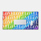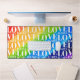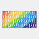 Ce tapis de bureau coloré est décoré d'un arrière - plan arc-en-ciel aquarelle et d'un motif Love is Love dans une élégante typographie blanche.