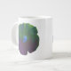 Cette énorme tasse présente une photo d'une fleur de pétunia qui a été manipulée pour rendre le centre de la fleur bleu. Le reste de la fleur a des teintes violettes, vertes et bleues, ce qui lui donne l'apparence d'une fleur arc-en-ciel grungy.