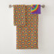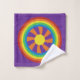 Cette serviette funky dispose d'un motif graphique super inspiré des années 1970 avec des disques se chevauchant dans un arc-en-ciel de couleurs centré sur un soleil avec des rayons légèrement tordus. Modifiez la conception pour modifier la teinte arrière - plan violette.