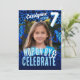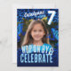 Préparez-vous à sauter dans le plaisir ! Cet invitation de fête d'anniversaire de la forêt tropicale humide célèbre un 7ème anniversaire très spécial avec des grenouilles à fléchettes à poison bleu vif et des motifs audacieux. Customisez facilement ce design avec votre propre photo, nom et détails.