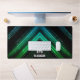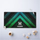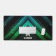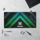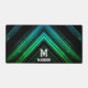 Personnalisez le monogramme avec votre initiale et votre nom. Tapis de bureau cool unique pour son bureau, sa chambre, son travail, sa grotte, son atelier, sa salle de jeux.. Lignes de chevrons de galaxie vert d'aqua métallique brillant. Abstrait brillant métallique noir vert et bleu galaxie rayures lignes design numérique. Pas de vrais étincelles !
