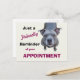 Cette carte postale de rappel de rendez-vous dit : "Juste un rappel amical de votre rendez-vous". Parfaite pour tous les besoins de rendez-vous de vos clients, cette carte postale montre une adorable photographie d'un Blue Nose Pitbull nommé Sarge, beau et gentil. Sarge vous regarde avec de grands yeux écarquillés, les oreilles retombant sur sa tête et une expression comique sur le visage, attendant avec impatience que quelqu'un lui lance sa balle. Facilement personnalisable pour tous vos besoins de rappels de rendez-vous.