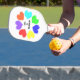 Cette superbe Pickleball Paddle présente une numériquement image d'un cercle de coeurs d'amour. Chaque coeur est une couleur différente de l'arc-en-ciel. Les coeurs rouge, orange, jaune, vert, bleu, indigo et violet sont une façon ludique et éclatante d'exprimer votre amour pour un petit ami, une petite amie, un mari ou une femme. Le texte noir au centre du cercle des coeurs dit : "L'amour est aveugle en couleur" et célèbre l'amour entre des gens de différentes races.